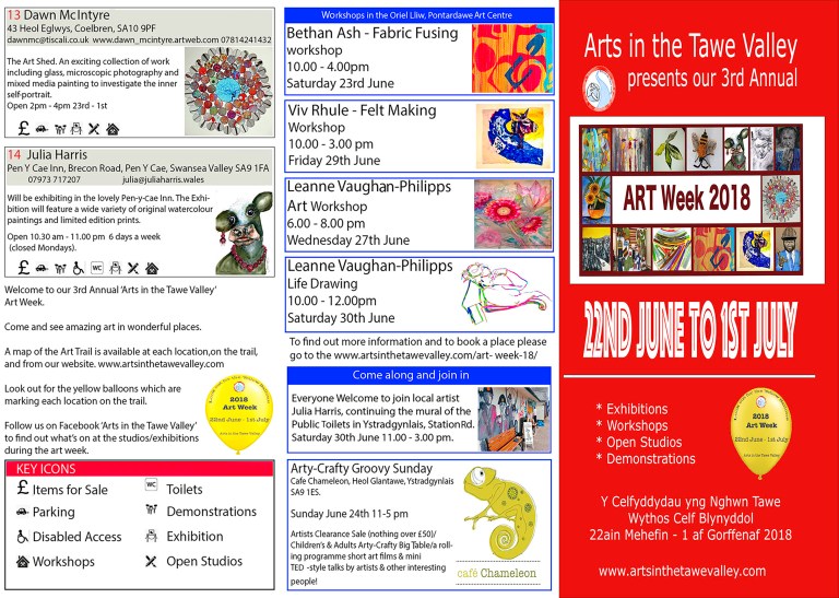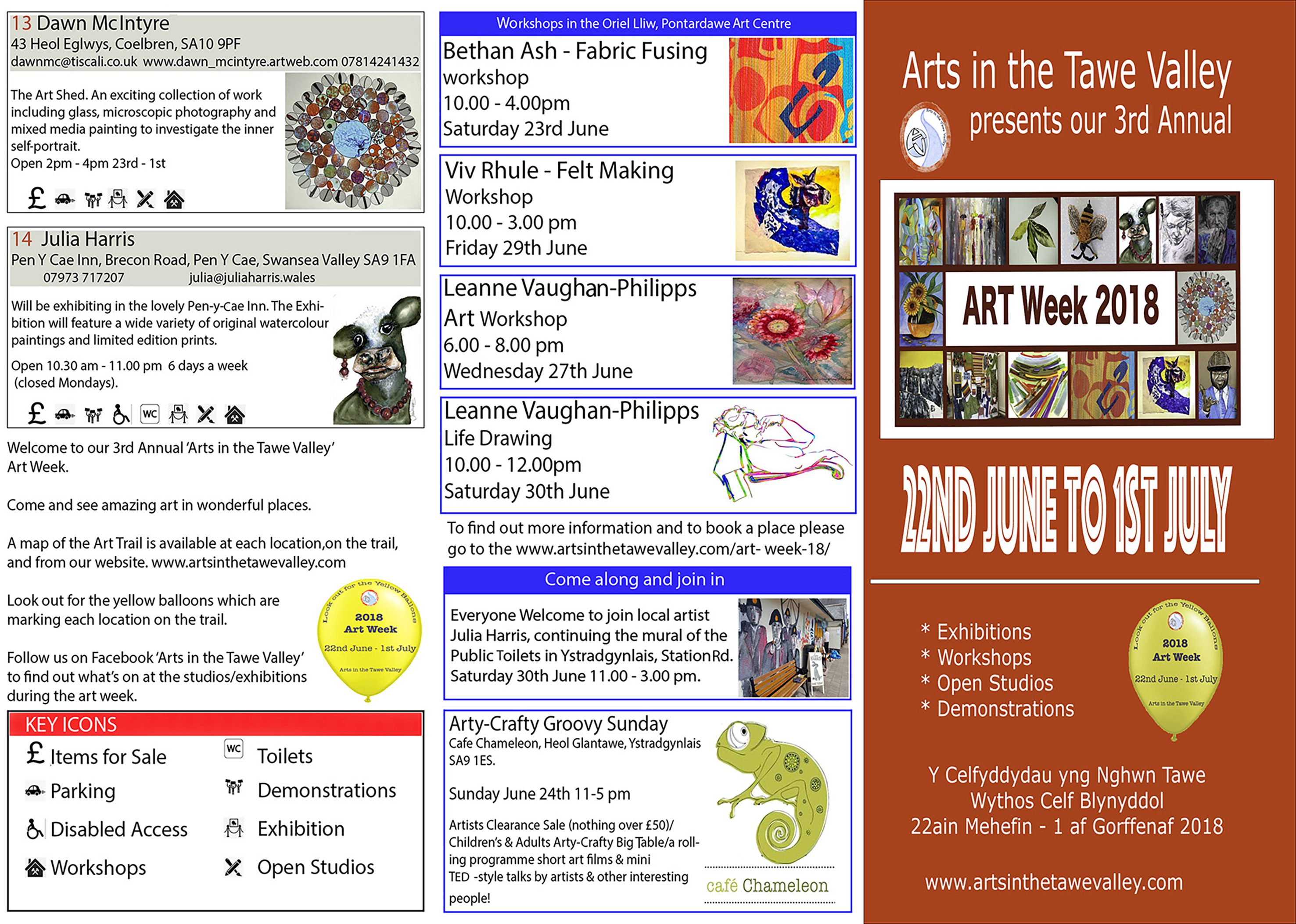 This year’s Art Week will take place from the 22nd June to the 1st July 2018. Please see the programme below with all the exhibitions, workshops and other arty happenings during the week. Please click on the leaflet to see a larger image.
